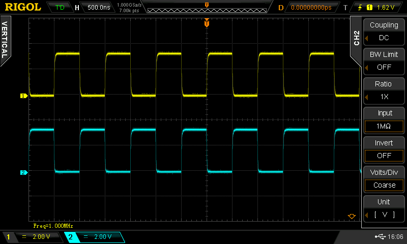 จากรูปสัญญาณเอาต์พุตที่ได้ จะเห็นว่า มีความถี่ 1 MHz และความกว้างช่วงที่เป็น High และ Low มีอัตราส่วน 2:3 หรือ Duty Cycle = 40%
